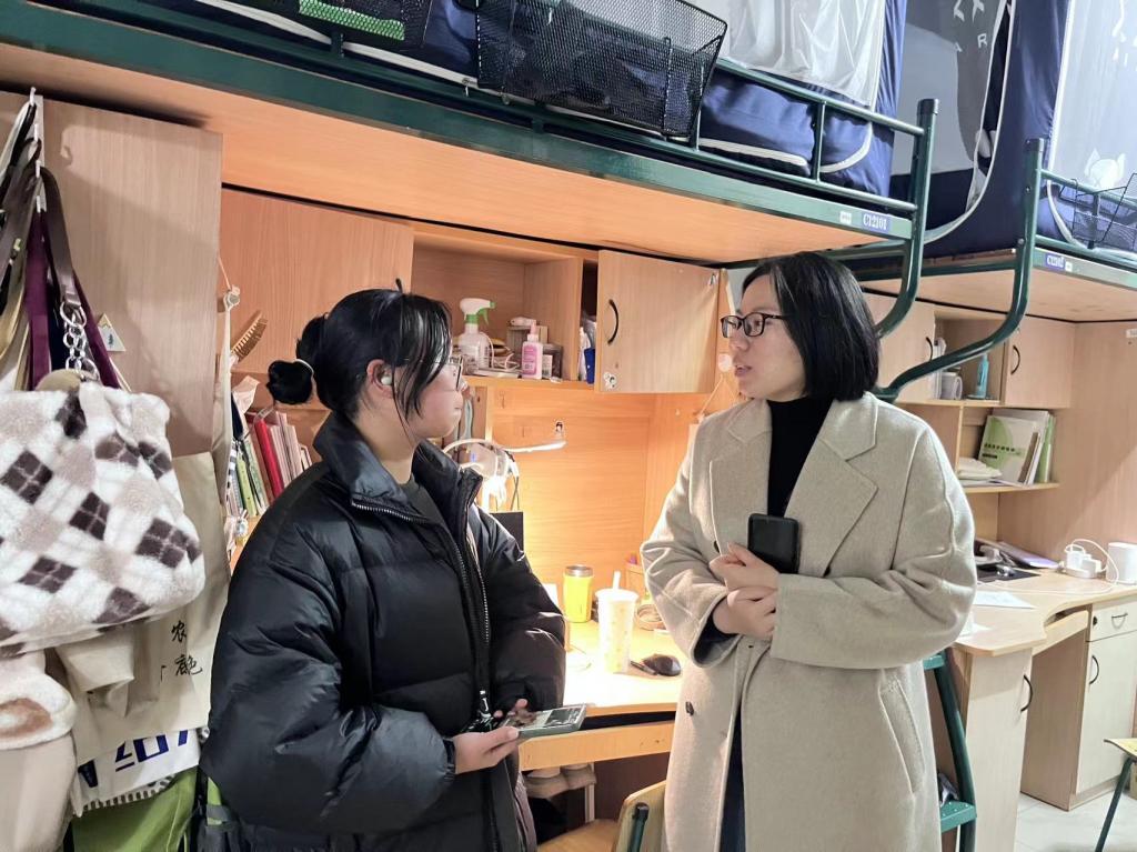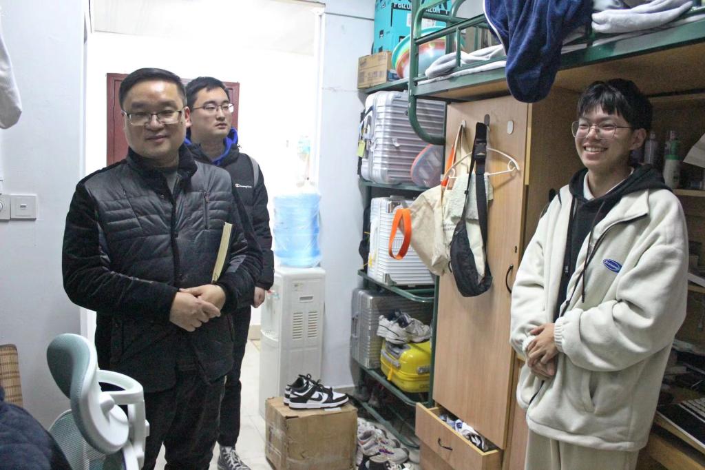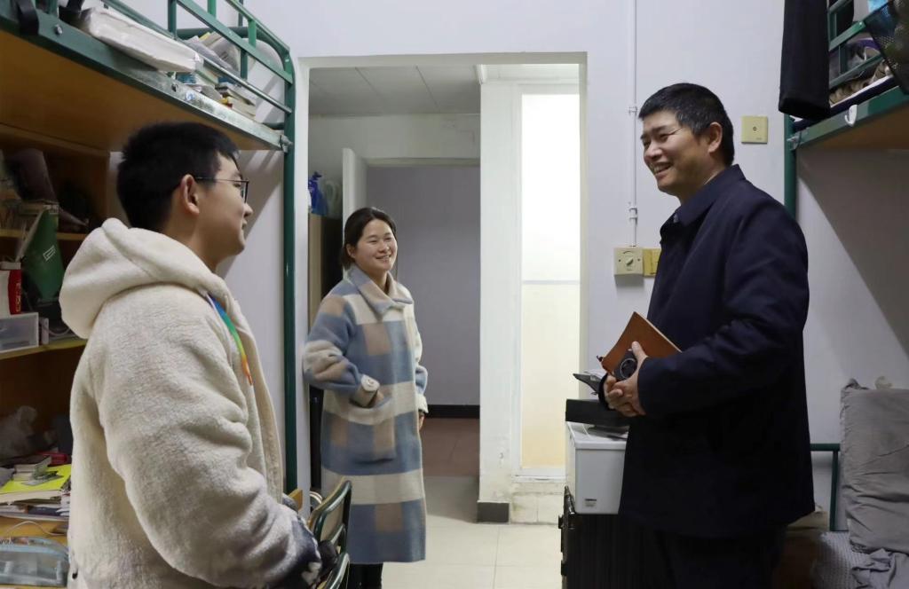 领导、辅导员来到学生公寓看望返校学生,了解学生复习备考情况,检查宿舍安全卫生。在寝室,老师与同学们亲切交流互动,聊家常、谈学习、话生活,勉励同学们认真复习备考、取得佳绩,并询问了同学们对禁漫天堂