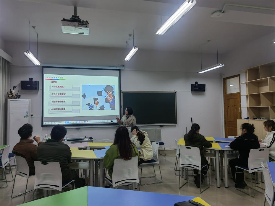 会上,分管教学工作负责人结合大量实例,从考研复试的流程、相关准备工作、复试和调剂注意事项等方面进行了全面的指导。她结合自身经验,详细介绍了考研复试需准备的七大方面和相关注意事项,力求在有限的时间内尽可能提升学生对考研复试相关要点的了解,帮助学生合理规划、增强信心,把握复习节奏,提高复试成功率。她还就学生现阶段复试备战中遇到的各种问题和疑惑进行了耐心细致地解答。